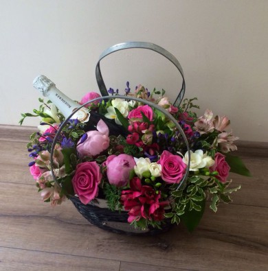 Вы ищете изысканный и красивый подарок для особого случая? Корзинка цветов с шампанским – отличный вариант! Пионы, розы, альстромерии и другие цветы собраны в стильной корзине и дополнены зеленью. Мы доставим такой подарок в любую точку Москвы и Московской области!